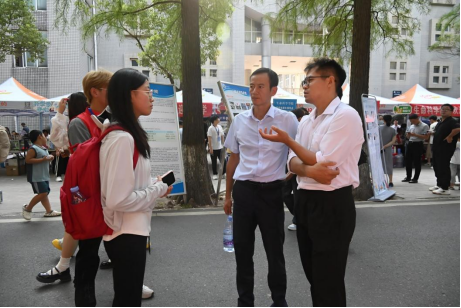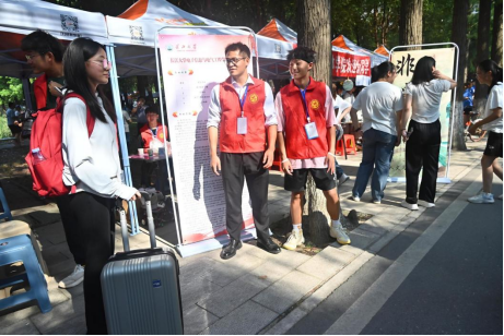 的志愿者们用满腔热情迎接远道而来的新生们,以最周到的服务、最耐心的引导为新生答疑解惑,帮助他们快速办理报到手续。